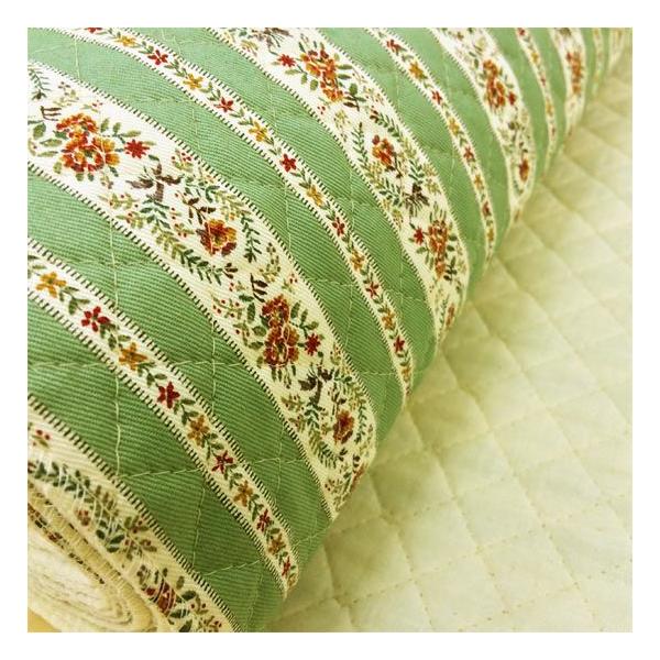 キルティング生地 花柄 キルト ストライプ フラワーリボン 緑系 コットンこばやし 布 大人 生地屋