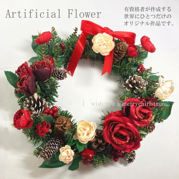 ホワイトローズのクリスマスリース ギフトタイプ4 カントリーマム オンラインショップ 相澤紀子 プリザーブドフラワー アーティフィシャルフラワーの通販