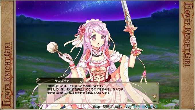 dmm games フラワーナイトガール ナズナ on twitter 団長の皆様 こんばんは 花騎士紹介のコーナーです 本日はこの方 5 サンゴバナさんです ネリネさんと同じく開催中のイベントで大活躍しているのですが 刃物大好きなちょっと危険な一面も 花騎士