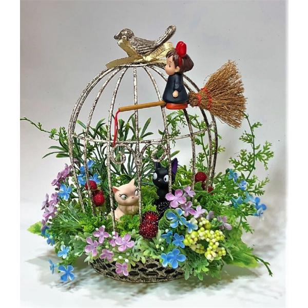 猫 ジブリ 魔女の宅急便 花 アレンジ 空飛ぶキキ ジジ リリー 鳥かごの花園