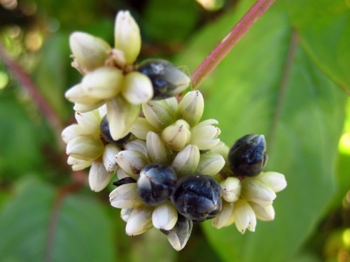 ツルソバ 蔓蕎麦 小さな白い花と黒っぽい実をつける野草 優しい雨