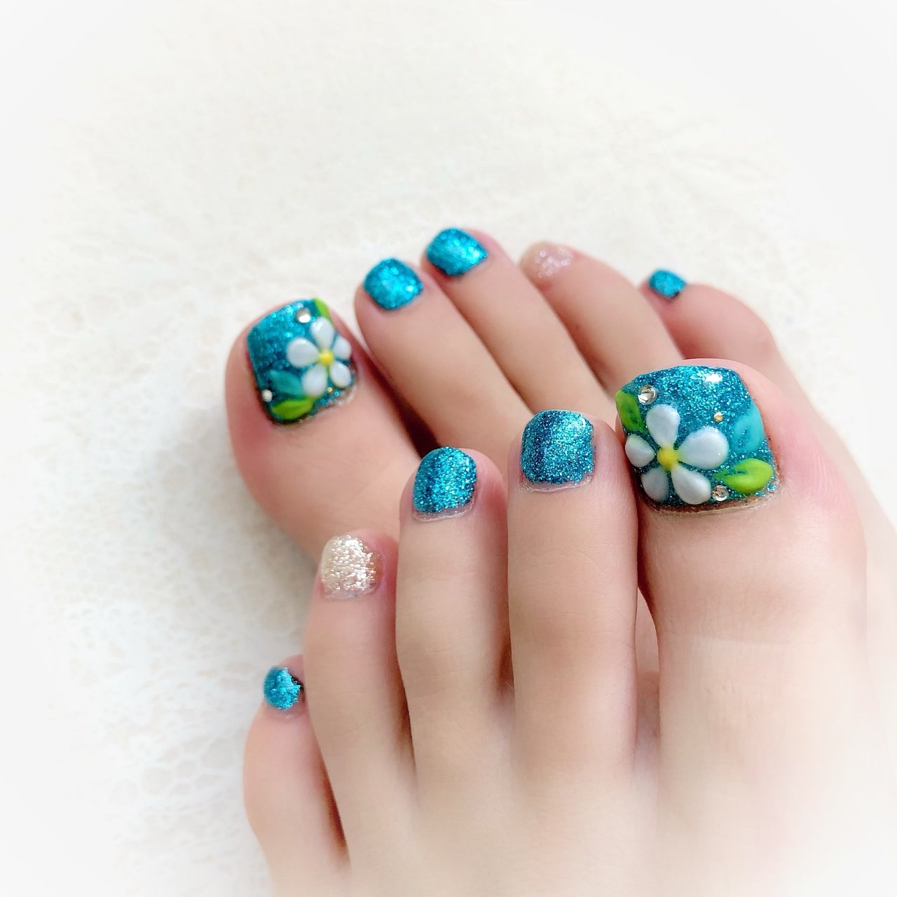 夏フットネイルデザイン 花柄 フェアリーネイル