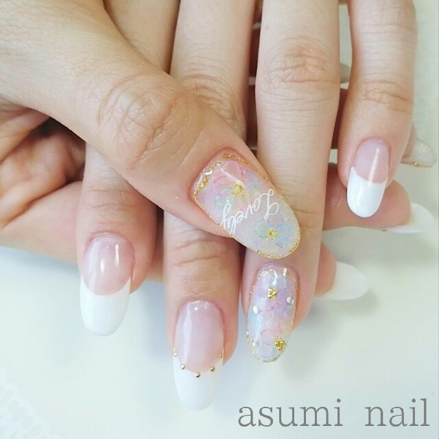 デート ハンド フレンチ フラワー シースルー asuminail 大竹あすみのネイルデザイン no 1201805 ネイルブック