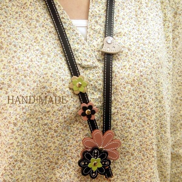 ネック ストラップ 革 花