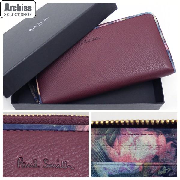 aucru com paul smith ポールスミス 長財布 pwu212 花柄 バラ柄 牛革 羊革