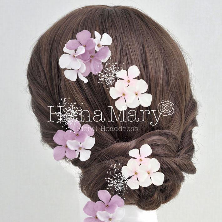 ラプンツェル 髪飾り チュールの2枚重ね紫陽花の花飾りセット