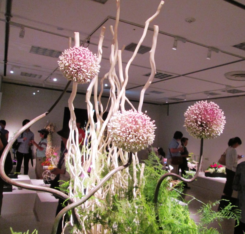 開発プロデューサーのぶらん菓 ジャンボリーキ中のサポニン 草月展示会で生け花にリーキを