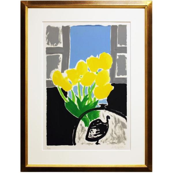 イズヤオンライン 三岸節子 黄色い背景の花 170 200 リトグラフ