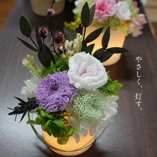 初盆 お供え 御供花 お盆 命日に贈る花 プリザーブドフラワー 仏花 仏壇用 ミニ 初盆 お供え 供花 お供え キャンドル プリザーブドフラワー led 仏花 華灯 p00469 花ギフト 贈り物 アンプール 通販 yahoo ショッピング