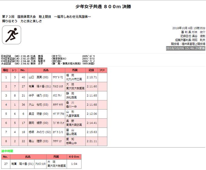 陸上競技の大会速報結果 陸上記録集