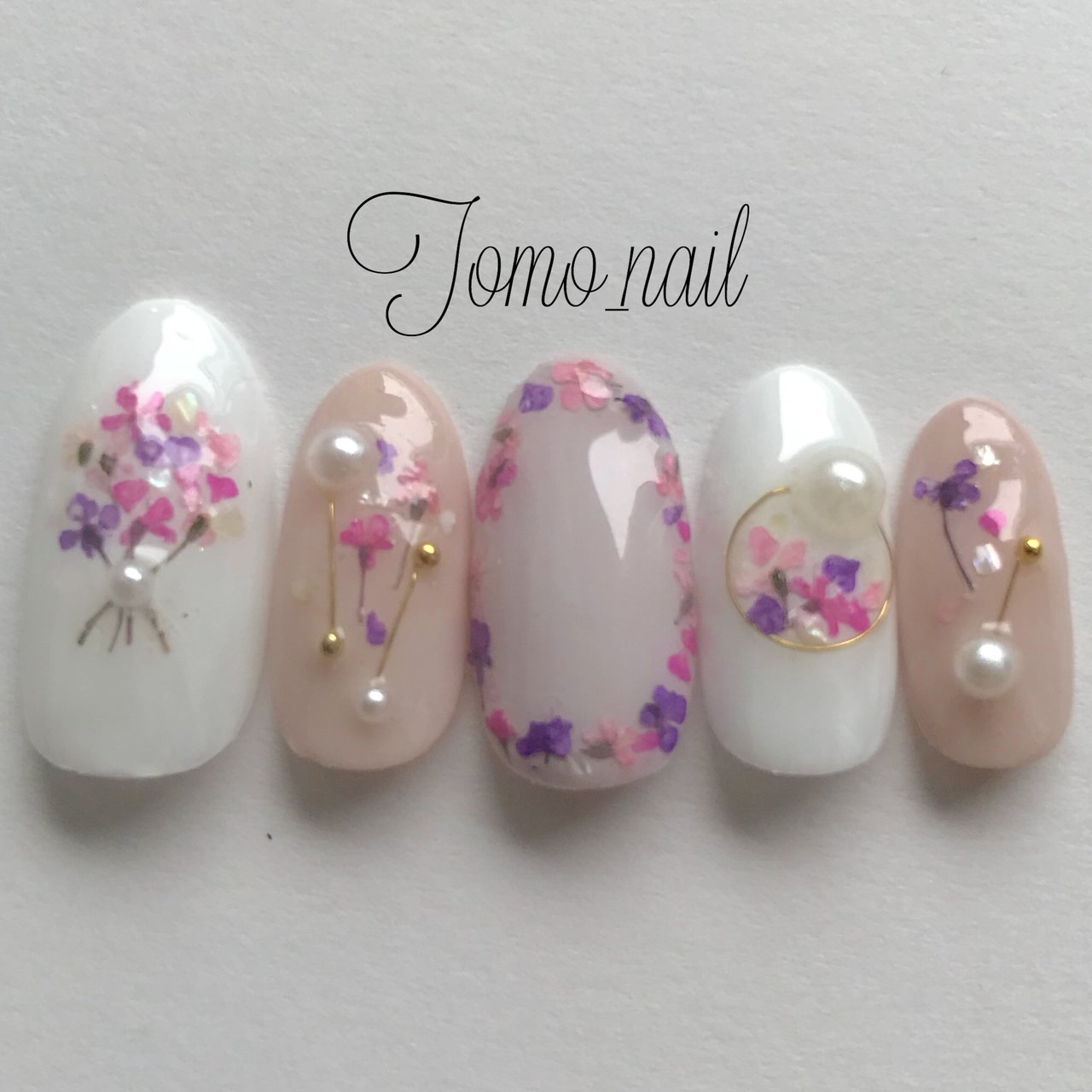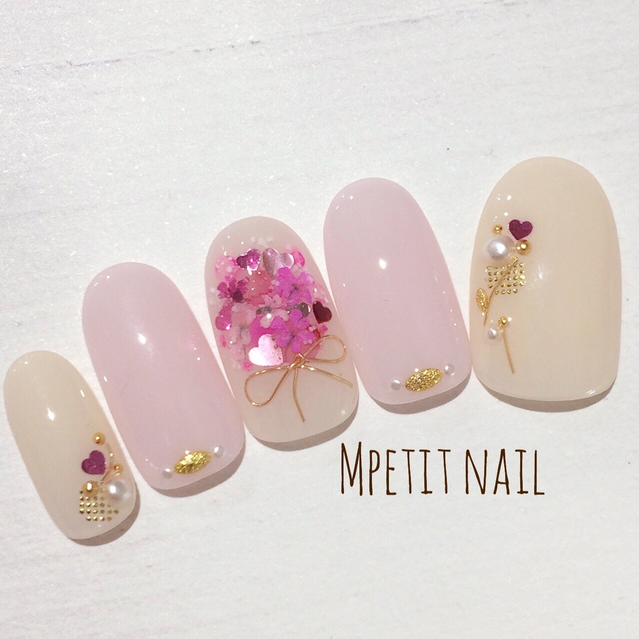 シャンパンゴールド パールホワイト バイカラー 人気 押し花 額縁 花束アート 横浜 ネイルサロン marjoram nail 尾上怜子 ワンカラーネイル