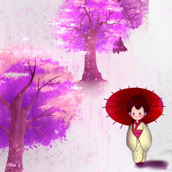 卡通日本樱花树林图片