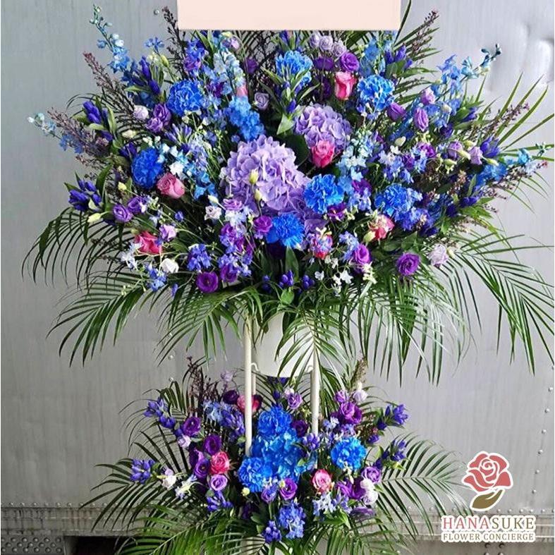 エリ花 工房 スタンド花2段 ブルーローズ 青系