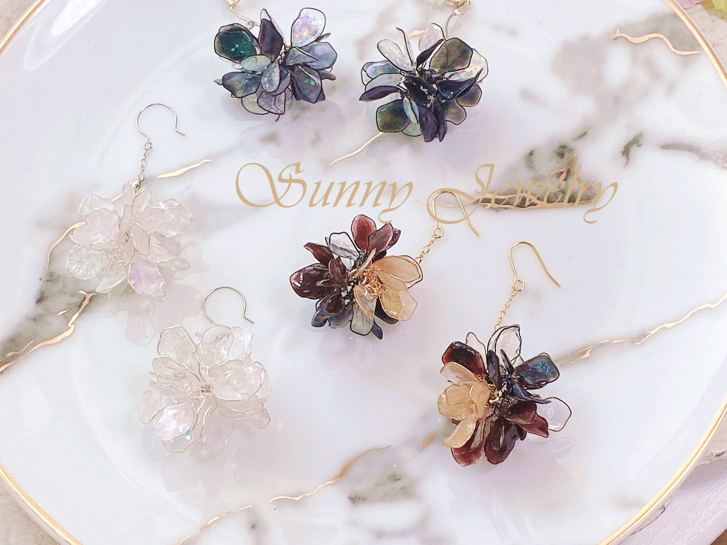 sunny jewelry by sunny uv樹脂花金屬編織櫻花耳環