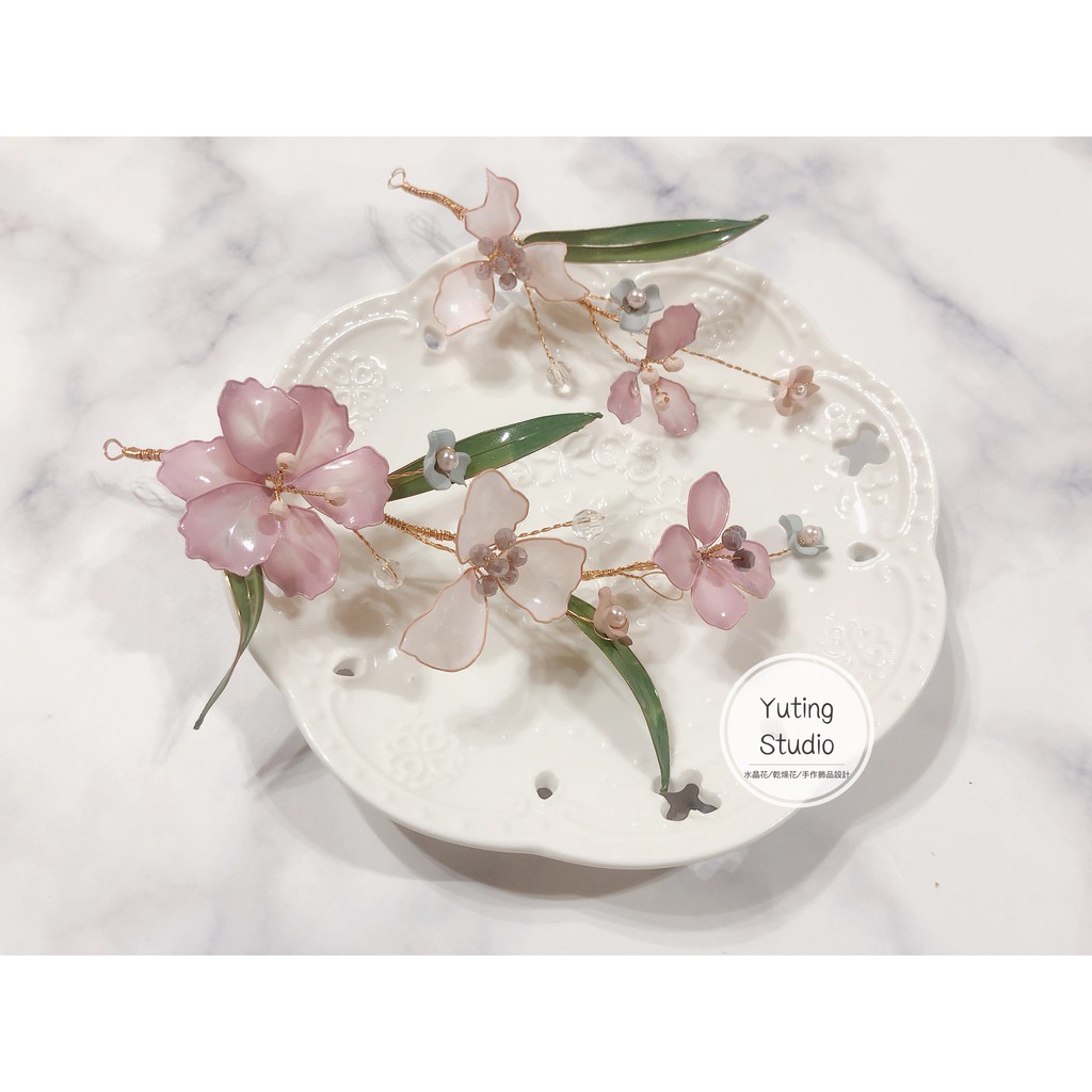 yuting studio 水晶花 乾燥花 手作飾品設計 k010樹脂花 水晶花 手作飾品 新娘造型頭飾