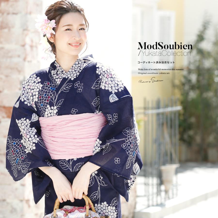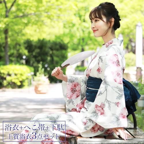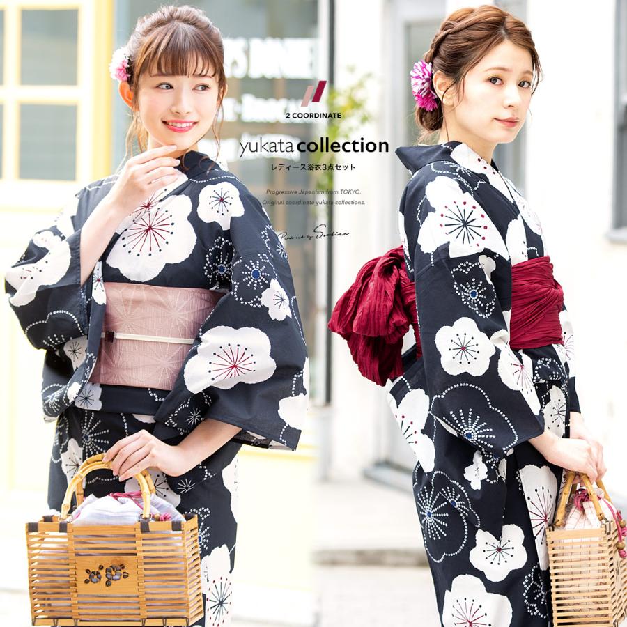 浴衣 レディース セット 浴衣セット 3点セット 浴衣 帯 下駄 黒紺 ブラックネイビー 白 ピンク 梅 鹿の子 花柄 綿 夏 花火大会 送料無料 yuset k1 brand1270ok きもの館 創美苑 通販 yahoo ショッピング