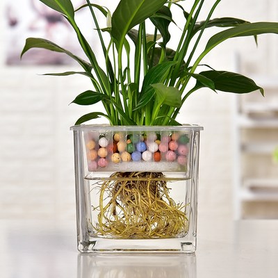 透明水培玻璃器皿大号植物玻璃花盆绿萝方形花瓶客厅水