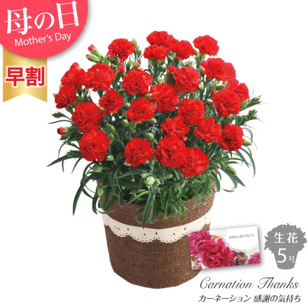 母の日遅れてごめんね 金賞農家の産地直送 送料無料 生花鉢植え 品種おまかせ 大ぶり母の日カーネーション 5号鉢