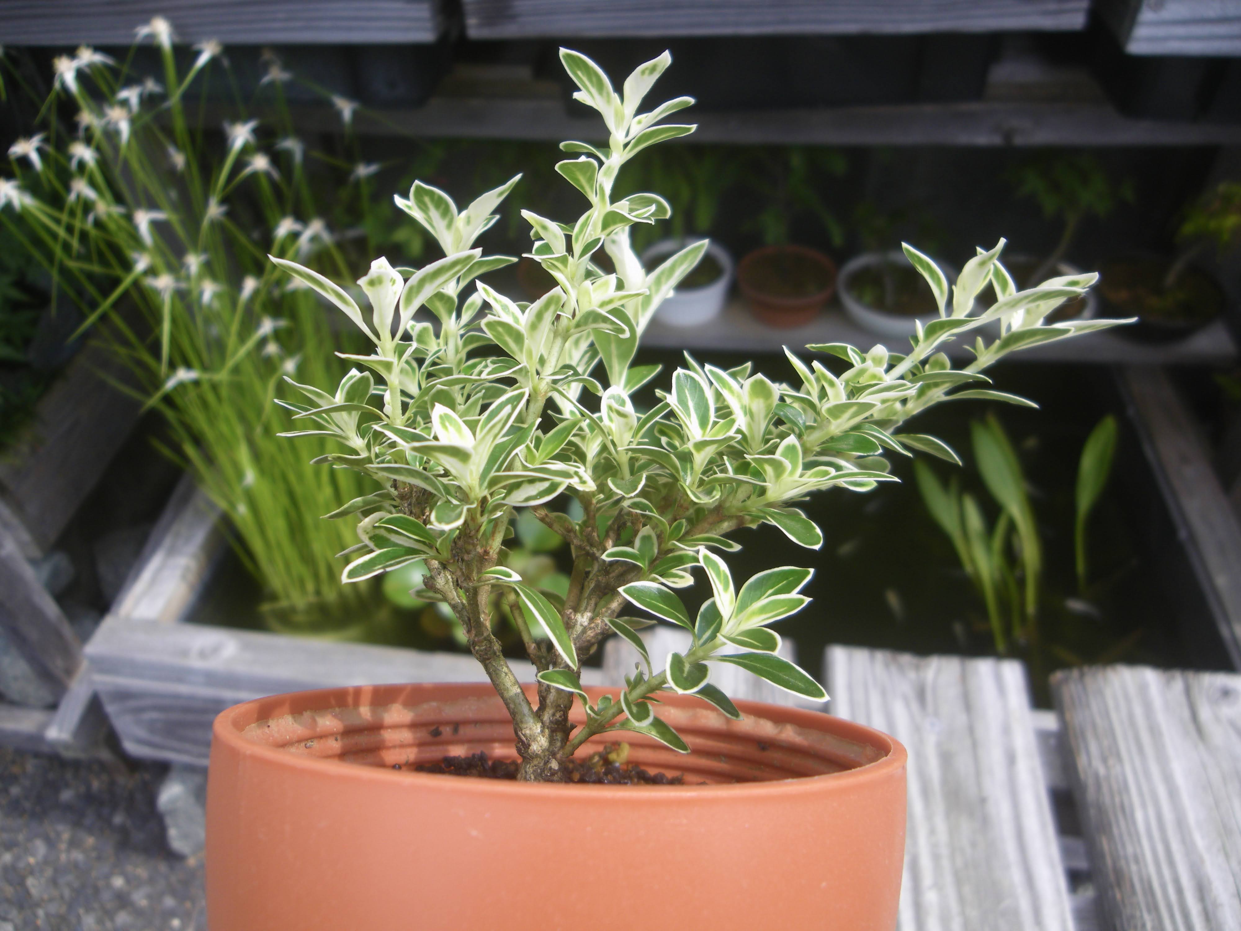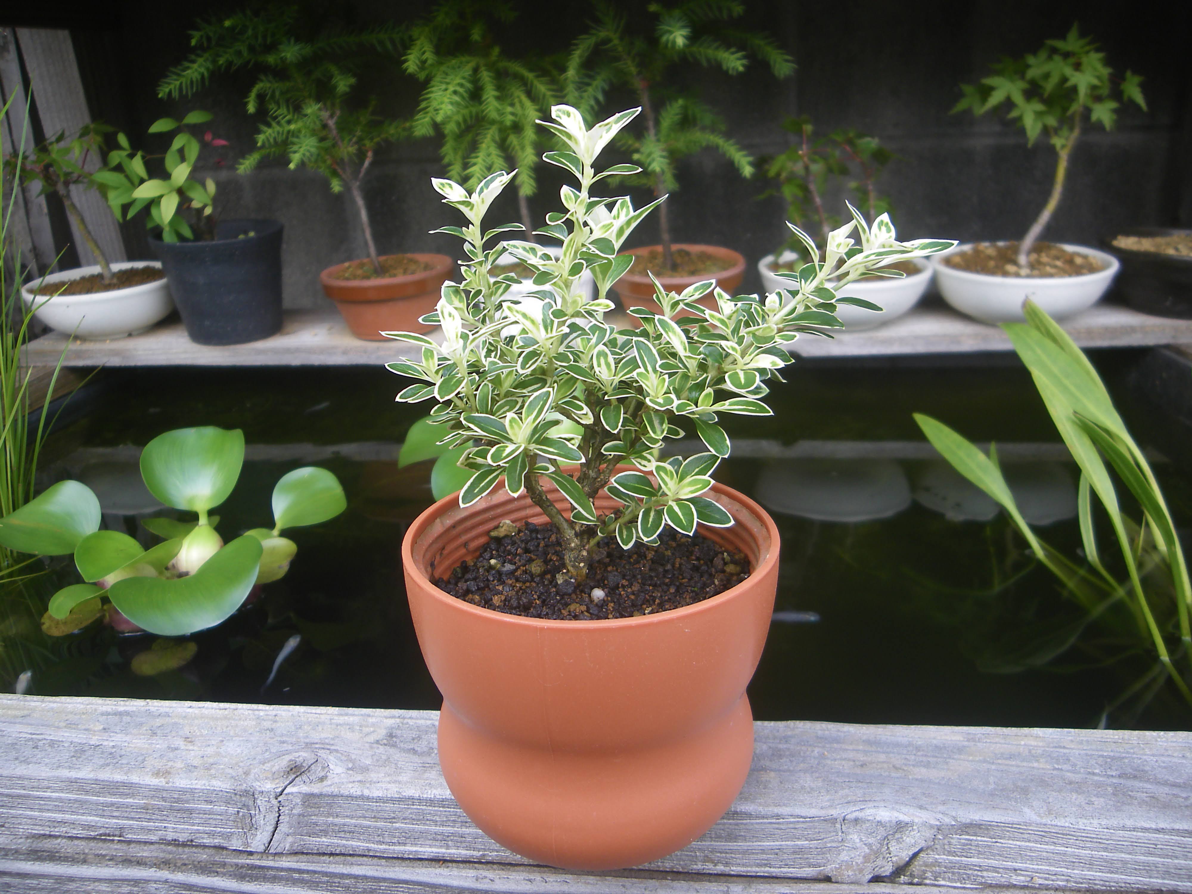 fioria こんばんは ミニ盆栽シリーズ パート 斑入白鳥花 実成クチナシ 早乙女 八つ房白鳥花 唐楓 facebook