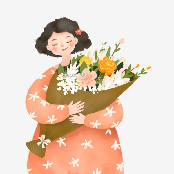 捧着花的美丽女孩png素材透明免抠图片 动植人物 三元素3png com