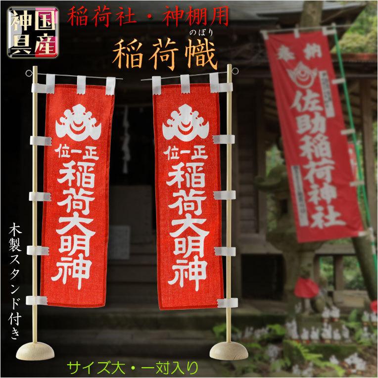 楽天市場 国産神具 稲荷社 神棚 稲荷幟 正一位 稲荷のぼり旗 一対 サイズ大 稲荷大明神 稲荷宮 お稲荷さん 御稲荷さま 神棚 祖霊舎 神徒壇 御霊舎 御霊代 神札 神社 神道 狐 仏壇仏具の仏縁堂