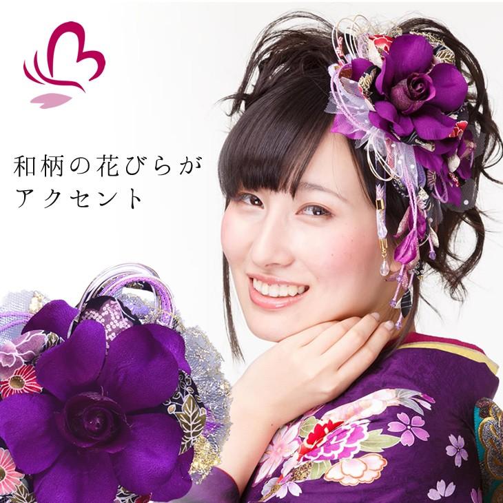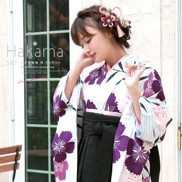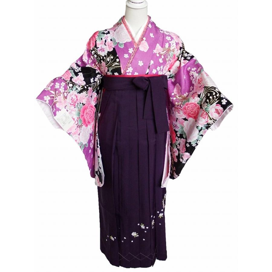 紫地洋花に蝶振袖に紺袴