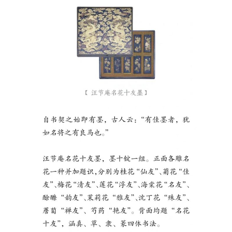 汪节庵制名花十友墨 文具 文物瑰宝 文史大观 少年文化