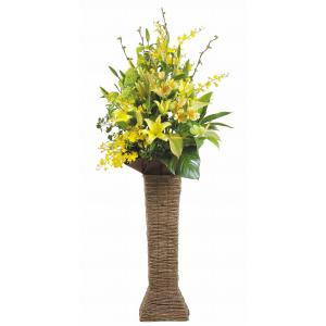 ps011 造花お祝い二段スタンド花 ローズ デルフィニウム カサブランカ ガーベラ ヤシノハ トルコキキョウ イエロー系 bkスタンド パチンコ店 楽屋花 劇場 送料無料 コンサート リニューアルオープン イベント 送料無料 通販 安い 開店祝い 開業祝い 0101pp shop 店